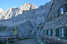 Diese Tour ist mein 4000er am Ostrand der Alpen. Es ist für mich etwas Besonderes in diese Dimension hineinzufühlen. Ich freue mich sehr, dass alles so gut geklappt hat und ich den Wettlauf gegen die Nacht gewonnen habe, dies unter anderem deshalb, weil ich am Nachmittag die weite Strecke vom Habsburgerhaus bis zum Hoyossteig im Laufschritt zurücklegte habe und mir auch bei allen Aufstiegen nicht viel Zeit ließ. Alle Abstiege waren sehr herausfordernd und zwangen zur Vorsicht, auch wegen der Steinschlaggefahr. Als ich kurz nach 18 Uhr den Gaislochsteig im Großen Höllental erreichte war mir klar, dass ich mein Ziel ohne Stirnlampe schaffen werde. Das war die richtige Motivation zum richtigen Zeitpunkt, um die Anstrengungen auszublenden. Nach dem 17. Klettersteig (Kronich-Eisenweg) habe ich beim Gipfelkreuz am Törlkopf die Strecke noch einmal in Gedanken Revue passieren lassen. Einen besseren Platz hätte es dafür nicht geben können.