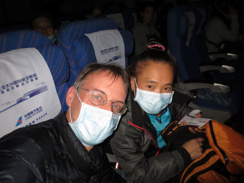 Die Heimreise nach Wien war sehr abenteuerlich: Am Vortag gegen 17 Uhr erfuhren wir, dass die Ortsausfahrt für den Verkehr behördlich gesperrt wurde, also kein Verlassen der Ortschaft mehr möglich war. Keine rosigen Aussichten für uns, den Flieger nach Urumqi im Nordwesten von China (und von dort direkt weiter nach Wien) am Abend des Abreisetages zu erreichen. In der Früh des Abreisetages blieb nur mehr polizeiliche Hilfe zur möglichen Lösung des Problems. Lan bat die örtliche Polizei telefonisch um Unterstützung - und hatte Erfolg! Mit ihren beiden Brüdern starteten wir die Reise zum etwa 200 km entfernten Flughafen auf einer schlechten, kurvenreichen „Ausweichroute“ durch Berglandschaft. Ab Verlassen des Heimathauses trugen wir Schutzmasken. Nach etwa 20 Minuten bei einer kleinen Ortsdurchfahrt die erste Polizeikontrolle, aber unsere Antwort, dass wir zum Flughafen fahren, reichte (noch) zum Verlassen des Kontrollpostens. Während der Weiterfahrt durch andere kleine Ortschaften sahen wir kaum Menschen. Nach einer Stunde Fahrzeit dann wieder Aufregung. Groß angelegte Polizeikontrolle! Wir durften nicht mehr weiterfahren. Es gelang Lan aber schnell die Polizei aus ihrem Ort mit dem Polizeibeamten vor Ort telefonisch zu verbinden. Dann war der Weg für uns wieder frei. Doch einer ihrer Brüder durfte uns nicht mehr weiter begleiten, musste das Fahrzeug verlassen und auf die Rückkehr des anderen Bruders warten. Auf der Autobahn war Geisterstimmung, wir sahen fast keine Autos. Endlich Ankunft am Flughafen. Polizeikontrolle, diesmal mit Messung der Körpertemperatur auf der Stirn. Überall maskierte Menschen. Gut, dass bei uns alles in Ordnung war und wir in das Flughafengelände einfahren durften. Ausnahmslos alle trugen Masken. Mußten Masken tragen. Wer keine getragen hätte wäre hoch bestraft worden. Großes Gefühl der Sicherheit am Flughafen. Verabschiedung vom Bruder, Ticket im scheinbar ausgestorbenen Flughafen geholt und zum Gate gegangen. Auf dem Weg dorthin wieder Kontrolle, wir mussten bestätigen, dass wie nicht aus der Provinz Hubei kamen. Und dann gleich die nächste Kontrolle auf dem Weg zum Gate: Wieder Körpertemperaturmessung. Diesmal wurden unsere Werte aber in auf unsere Namen lautende Dateien eingetragen. Endlich am Gate. Kaum Menschen. Flug nach Urumqi. Vor der Landung wurden wir von den Flugegleitern erneut aufgefordert schriftlich dazu Stellung zu nehmen, ob wir in der Provinz Hubei waren. Landung. Dann betreten zwei vollkommen in Schutzanzüge vermummte Chinesen das Flugzeug. Wir durften nicht aussteigen. Die Gestalten stoppten bei den beiden Passagieren unmittelbar hinter uns. Lange Vernehmung, weil die Passagiere aus Hubei stammen; doch sie waren seit 3 Jahren nicht dort und nun direkt aus Shenzhen nach Urumqi, ihre Heimat, angereist. Die vermummten Gestalten ließen die Aussagen der beiden Passagiere behördlich checken. Als „Entwarnung“ gegeben wurde, verließen wir das Flugzeug. Nacht. Tags darauf einchecken in den „Dreamliner“ nach Wien. Wieder Körpertemperaturmessung beim Betreten der Flughalle. Es tut gut zu hören, dass der Kontrolleur ein OK von sich gibt.. Auf dem Weg zur Sicherheitskontrolle erneute Körpertemperaturmkontrolle: Ich sah schon den in Schutzanzug gehüllten Kontrollor aus der Ferne, mein Blutdruck stieg, ich griff mir unwillkürlich auf die Stirn, um die Temperatur zu fühlen. Natürlich war ich voll fit. Dennoch hoffte ich, dass die Temperatur im 36 Grad-Bereich lag und ich nicht was anderes Harmloses aufgefangen habe. Alles ok. Gut! Auch die Ausreiseformalitäten knapp später klappten problemlos. Dann waren wir endlich im Flieger. Doch der hob nicht rechtzeitig ab. Stunden vergingen. Lan bekam noch eine SMS von einer Bekannten aus Wien, dass die AUA Flüge nach China eingestellt hätte. Könnte es sein, dass wir noch am Boden waren, weil keine Einreisebewilligung nach Österreich vorlag? Nein. Endlich wurde der Flieger enteist und konnte abheben. Immer noch Maskenpflicht. Dann endlich die Landung in Wien… alles gut.